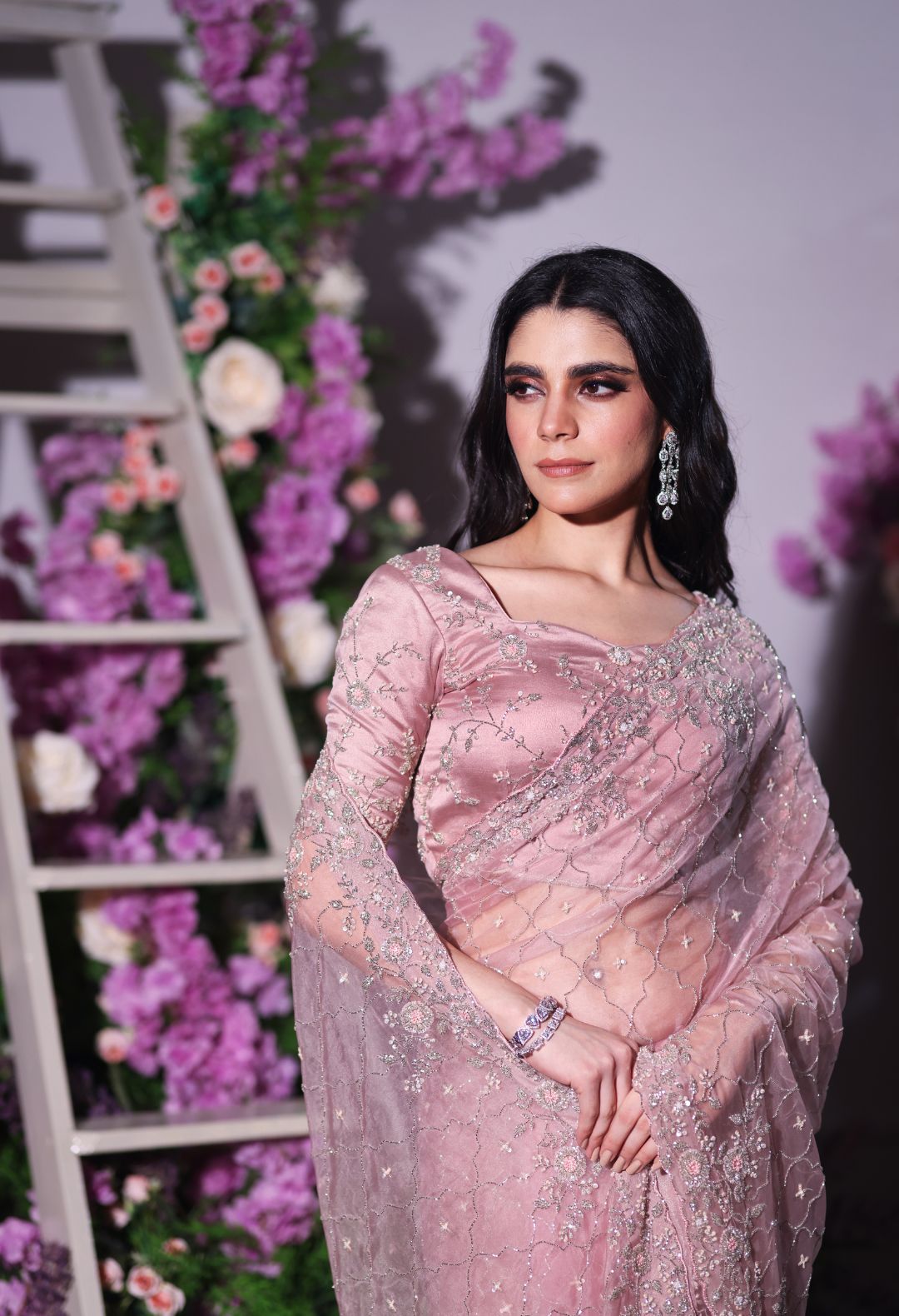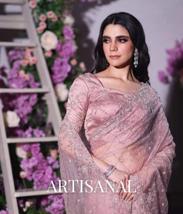 Organza saree with classic cutdana jaal detailing all over along with monochrome blouse.Comprises: Blouse, SareeFabric:...