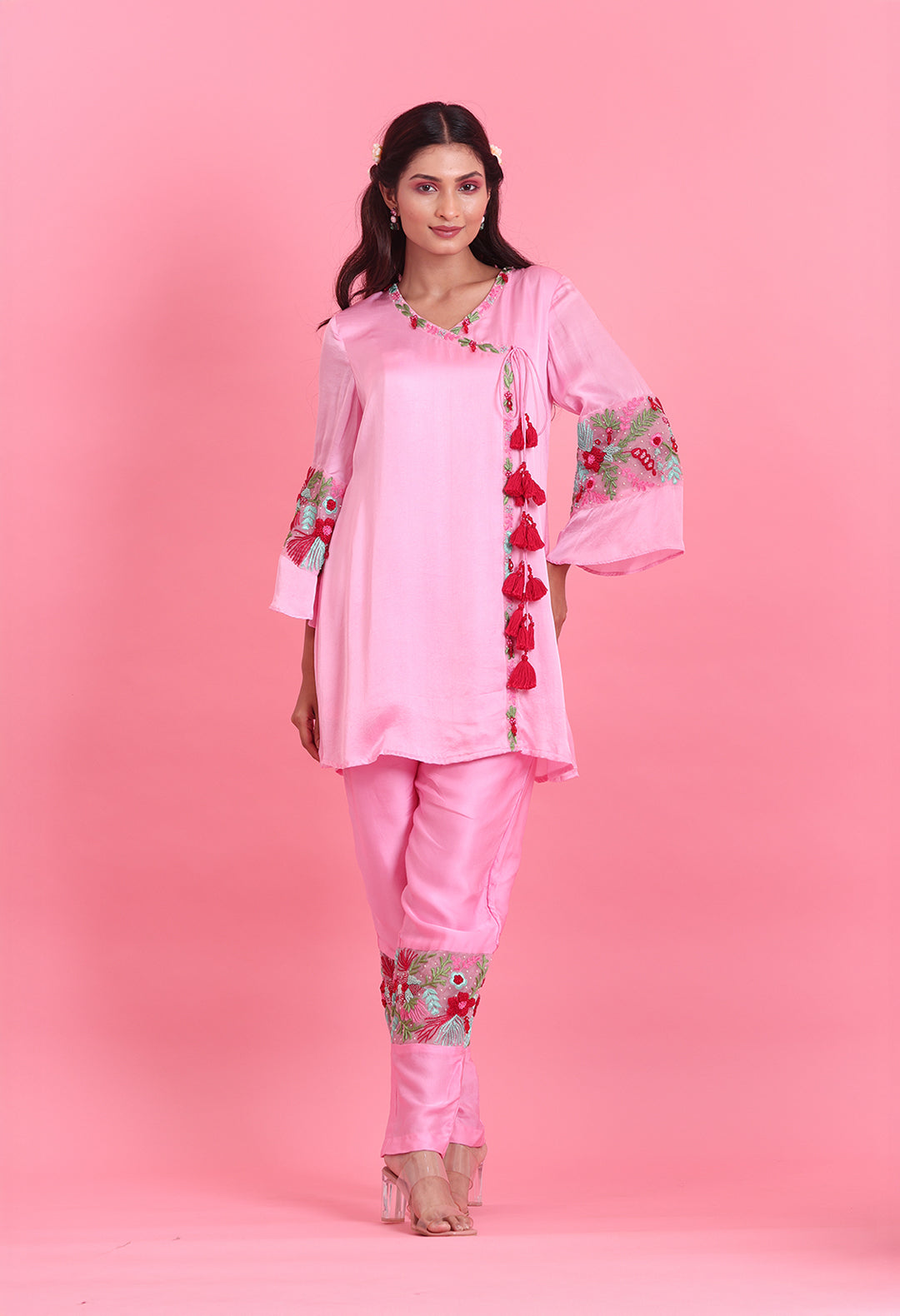 A stylish two piece coord set with intricate threadwork and pearls embroidery.Comprises: Kurta and PantsFabric:...